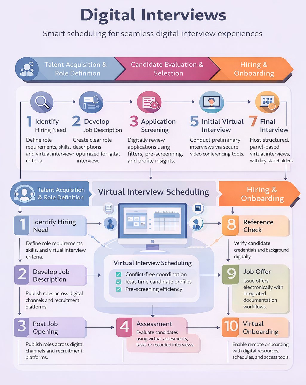 - Reducing time-to-hire through streamlined virtual engagement and scheduling