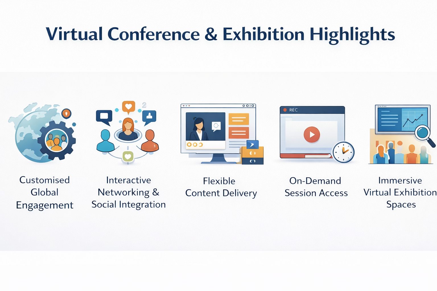 Virtual conferencing enables organisations to maximise event ROI by expanding audience reach to remote and global participants, while significantly reducing costs, logistics, and travel complexities. It offers greater flexibility—attendees who cannot join live sessions can still access content on-demand through event recordings. The convenience of virtual platforms eliminates time and location barriers, empowering participants to engage, network, and access valuable event information anytime, anywhere, and at their own pace.